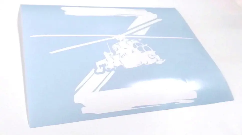 Наклейка «Z_Ми24» - изготавливается методом плоттерной резки виниловой или светоотражающей плёнки. Размер определяется в зависимости от варианта наклейки.